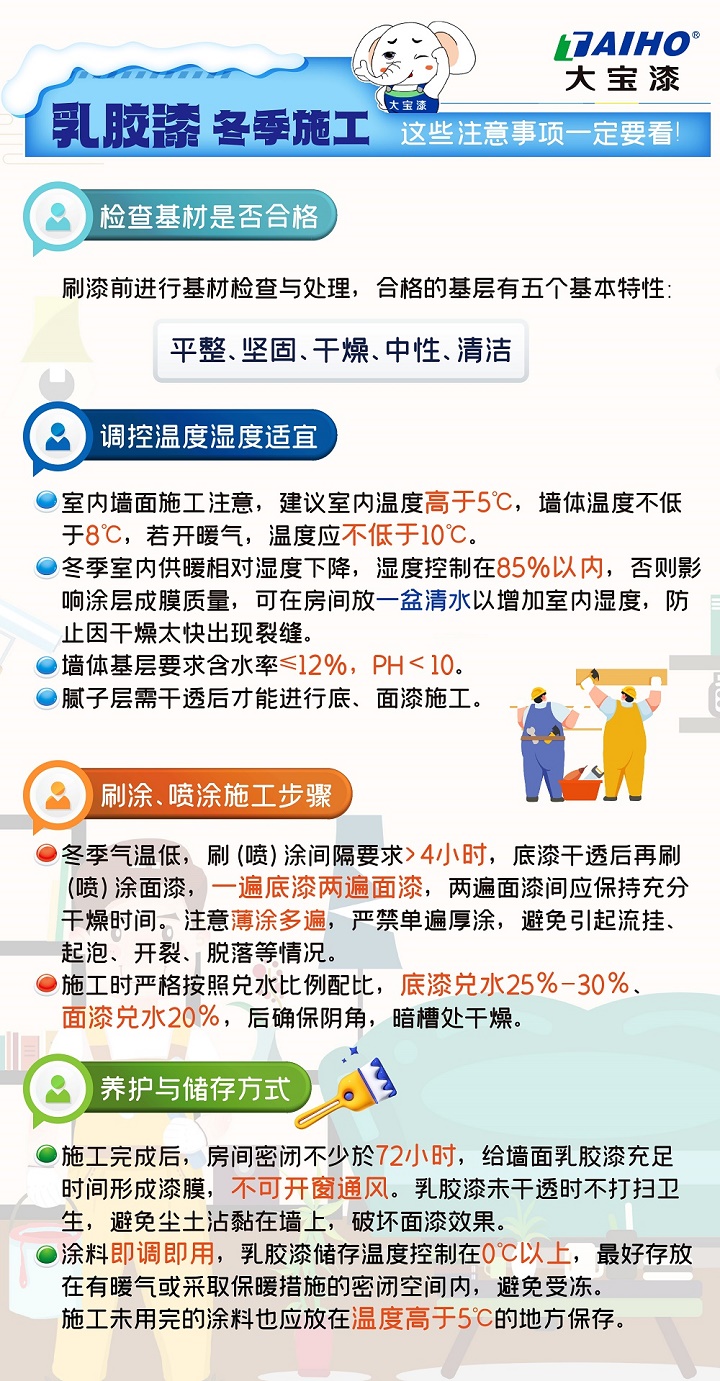 如果您對(duì)冬季墻面施工還有疑問(wèn),歡迎留言,大寶漆會(huì)為您詳細(xì)解答!