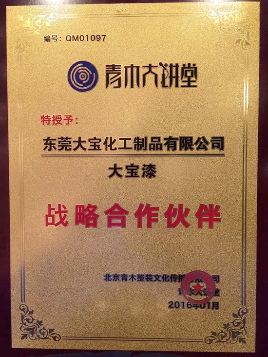東莞大寶化工葉子琛執行經理等代表大寶漆應邀參加大會,東莞大寶化工黃文敏高專向大會作“歐式工藝,創新價值”的主題演講,受到大會的關注,同時大寶漆成為青木整裝“戰略合作伙伴”,繼2015年后大寶漆再次榮膺青木大講堂“木制品涂料工藝榮譽顧問”。