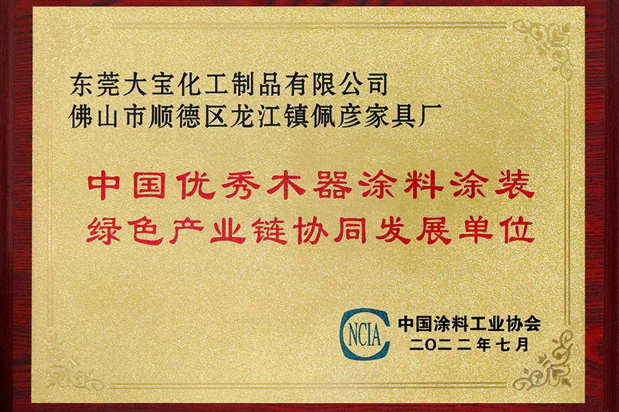 東莞大寶獲中國優秀木器涂料涂裝綠色產業鏈協同發展單位