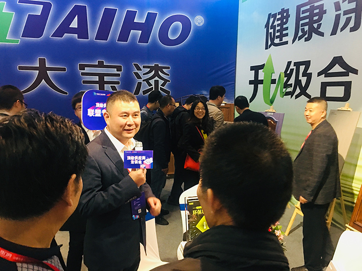大寶漆榮獲2018最受認可的木門環保事件獎(左四謝偉代表領獎)