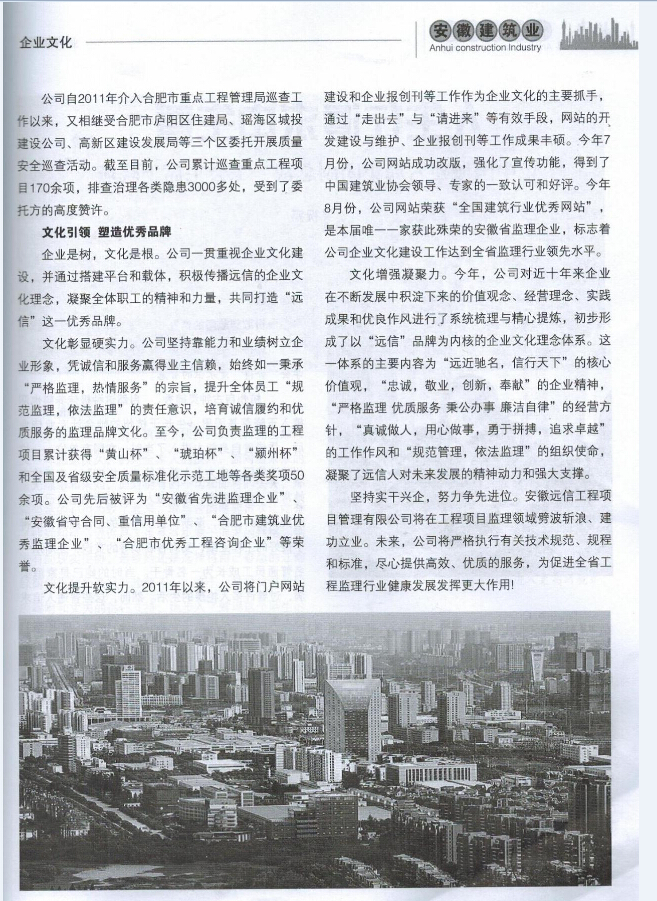 省級行業主流媒體聚焦遠信發展――《安徽建筑業》刊發遠信公司發展紀實文章
