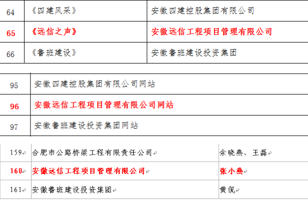 5月9日,中國建筑業協會公布了第六屆全國建筑行業信息傳媒工作競賽優勝者名單,公司企業報《遠信之聲》連續第二年被評為“全國建筑行業優秀報紙”,公司網站連續第三年被評為“全國建筑行業優秀網站”,公司報紙及網站編輯張小燕被評為“全國建筑行業信息宣傳優秀工作者”。
