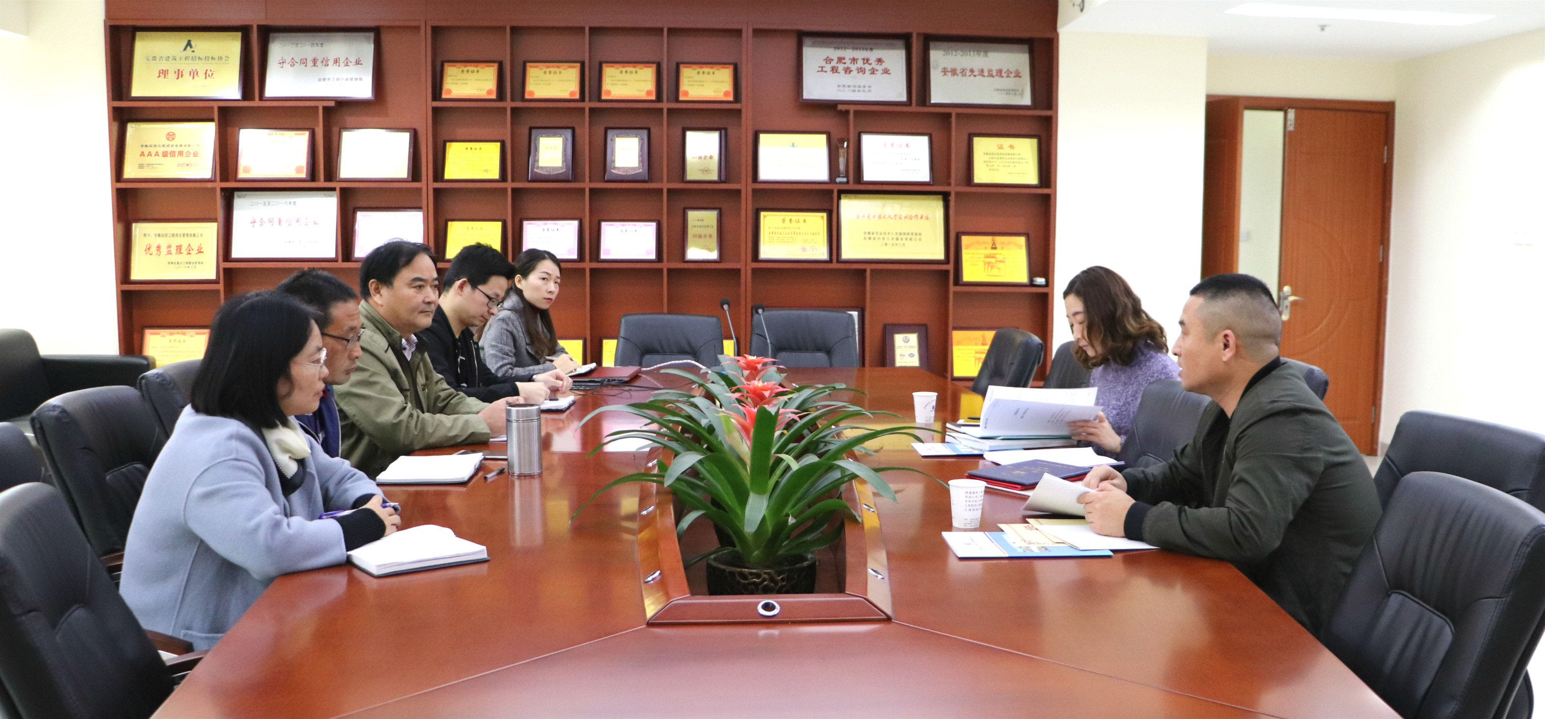 交流會上,郝總向考察團一行詳細介紹了遠信的經營發展情況、業績情況以及競爭優勢,隨后,雙方就合作前景充分地交換了意見。考察團一行人還實地考察了我公司監理的復星地產合肥星泓金融創新城項目,并對該項目的監理工作成效給予了高度肯定。