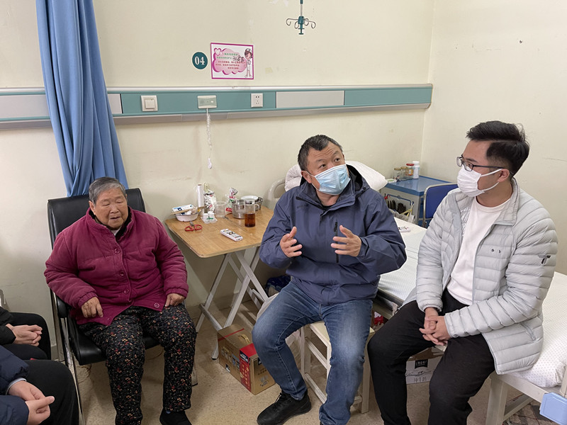 在住院部病房,余松林董事長關切詢問了馬老的身體狀況和生活情況。老人雖年事已高,但仍舊頭腦清醒、精神矍鑠,對遠信黨支部一行的到來感到非常高興,并激動地講述起參加渡江戰(zhàn)役的親身經(jīng)歷。