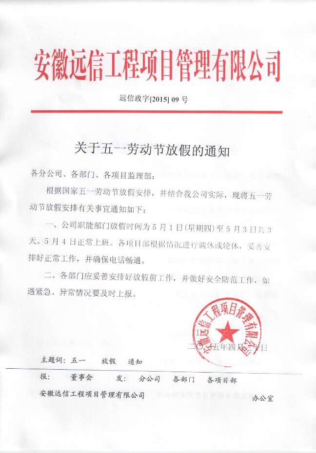 關于五一勞動節放假通知