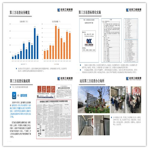 遠信公司是安徽省內最早開展第三方質量安全巡查服務的單位之一,自2012年開展服務工作以來,先后服務于合肥市重點工程建設管理局、合肥市濱湖新區建設投資有限公司、合肥市廬陽區住建局、合肥市瑤海區城投公司、合肥高新區建設發展局、肥東縣公共資源交易中心、肥西縣城鄉建設投資有限公司、六安市建設工程質量安全監督處、金寨縣住建局、六安市裕安區住建局、臨泉縣重點工程建設管理局、阜陽市阜南縣教育局等單位,在省內政府購買監理巡查業務市場占有率名列前茅。