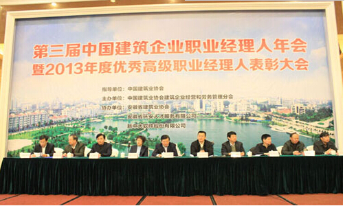 12月6日,由中國(guó)建筑業(yè)協(xié)會(huì)建筑企業(yè)經(jīng)營(yíng)和管理分會(huì)主辦,安徽省建筑業(yè)協(xié)會(huì)、安徽省環(huán)安人才服務(wù)有限公司、新中大軟件股份有限公司協(xié)辦的第三屆中國(guó)建筑企業(yè)職業(yè)經(jīng)理人年會(huì)暨2013年建筑企業(yè)優(yōu)秀職業(yè)經(jīng)理人表彰大會(huì)在安徽池州隆重舉行。